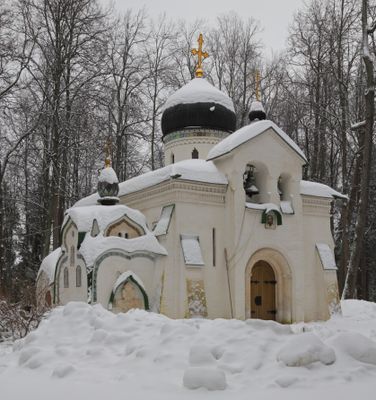 Two well-known Russian artists, Viktor Vasnetsov and Vasily Polenov, designed and built this building between 1881 and 1882. A flood in the area forced local people to find their own place for religious services.
