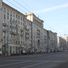 The structure represents Soviet architectural principles of the 1930s, combining residential spaces with ground-floor commercial areas in central Moscow.