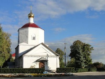 The Nativity of Christ Church sits within the Syzran Kremlin compound and features classical Orthodox architecture with three separate altar areas. The building rises prominently above the surrounding fortress grounds and can be seen from various points in the city.
