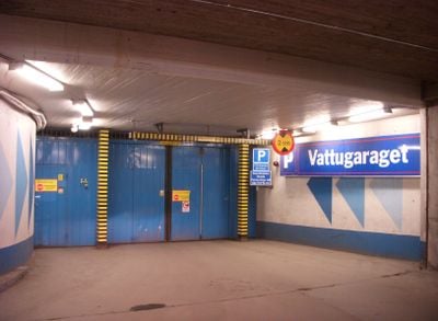 Five large generators power the facility during emergencies, while the space serves as Vattugaraget parking garage with 296 spaces during regular times.
