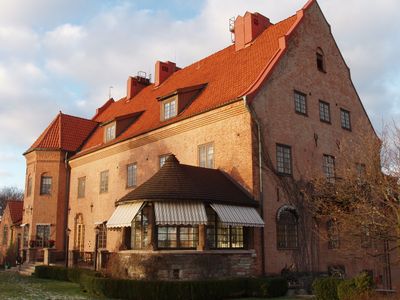 Located 15 minutes from Stockholm, the building functions as a conference center with facilities for events, meetings, and weekend accommodations.