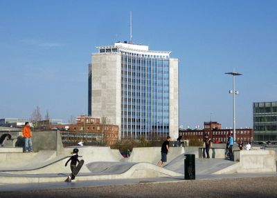 Completed in 1958 as Sweden's first skyscraper, the Gängtappen building initially served as the headquarters for the Kockums company until 2009.