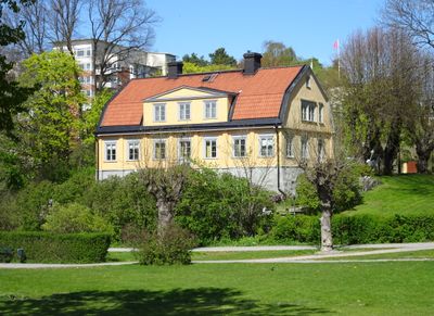 The Lilla Frösunda estate stands along Gustav III's Boulevard, featuring white painted walls and traditional Swedish architectural elements from the 1700s.