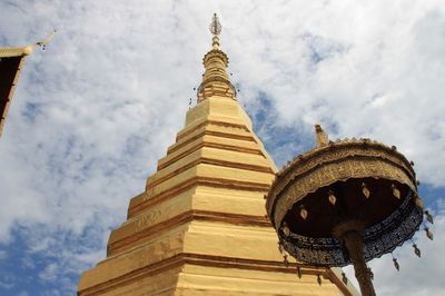 The temple features a 33-meter-high golden stupa built in the Chiang Saen style, containing a hair relic of Lord Buddha within its structure.