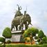 A bronze statue depicts Queen Suriyothai mounted on a war elephant, surrounded by 49 sculptural pieces at the memorial park.