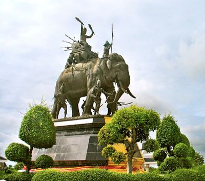 The monument represents Thai female leadership and commemorates the sacrifices made for national defense during the Ayutthaya period.