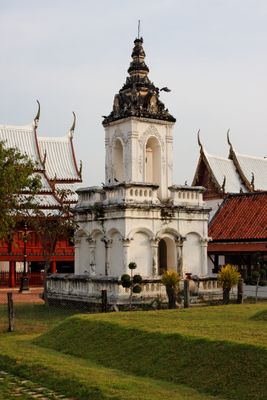 The temple's wooden pavilion, Sala Kanparian, was originally King Suea's residence in Ayutthaya before being relocated to honor Supreme Patriarch Taeng-mo.