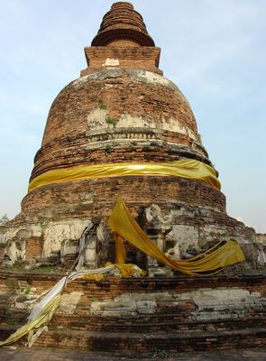 The principal chedi features eighty elephant figures at its base, reflecting architectural influences from Sri Lanka seen in other Thai religious structures.