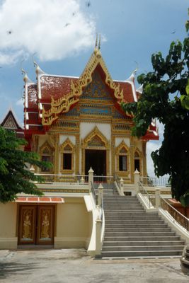 The temple complex contains multiple structures including a viharn, chedi, and main hall decorated with traditional Thai architectural elements and ornate details.