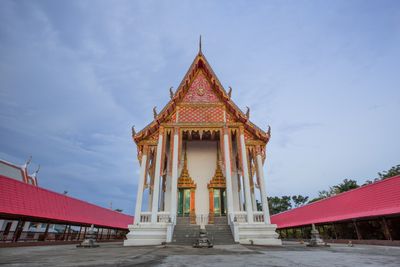 The temple's architecture incorporates specific elements of regional Thai design, including stepped roofs and ornamental features characteristic of local craftsmanship.