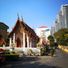 The temple features traditional Thai Buddhist structures with religious images and artifacts displayed throughout its grounds at coordinates 13.707222, 100.475833.