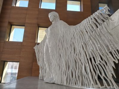 The Akdeniz statue consists of 112 equally spaced metal strips forming a figure of a woman with open arms at İstiklal Avenue.