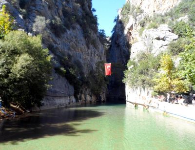 The canyon extends through the Toros Mountains at 420 meters elevation, featuring steep slopes and a creek that flows into the Berdan River.