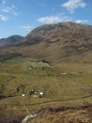The cave entrance sits one kilometer southeast of Torrin village, requiring visitors to traverse through a shallow valley on Beinn an Dubhaich's north side.