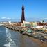 This coastal settlement stretches for roughly 7 miles (11 kilometers) along the Irish Sea, with three piers extending into the water and entertainment buildings lining the promenade. Victorian structures sit alongside modern leisure facilities, while the tower rises above the low rooflines and remains visible from all points along the beach.