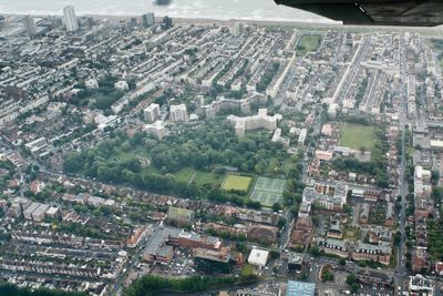 Hove stretches along the English Channel coastline with a promenade featuring traditional Victorian and Regency period residential buildings facing the sea.