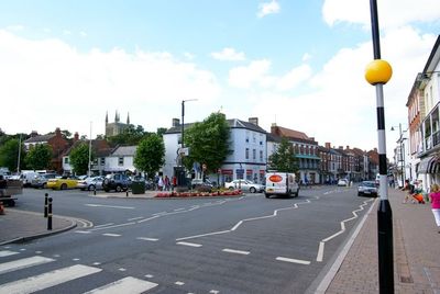 The town offers multiple parking facilities near the shopping areas, with regular train services from Station Road connecting to Worcester and London.