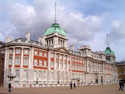 The four-storey yellow brick structure features three broad bays on its front facade and five bays facing Horse Guards Parade at the rear point.