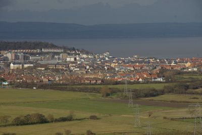 Portishead is a coastal town in North Somerset along the Severn Estuary. It spreads from its marina through residential neighborhoods to surrounding green spaces, with a center containing shops and services for daily needs.