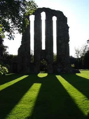 The abbey's west wall contains two original medieval doorways and lancet windows, demonstrating Norman architectural influences from its mother church.