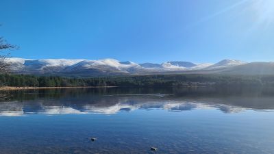 Cairngorms National Park stretches across Aberdeenshire, Moray, Highland, Angus, and Perth and Kinross, covering mountains, valleys, old forests, and waterways. The Scottish Highlands present steep heather-clad slopes, open moorland, and quiet lochs scattered between the summits.