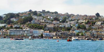 The town stretches along the western bank of Kingsbridge Estuary, featuring a natural harbor and multiple sandy beaches along the coastline.