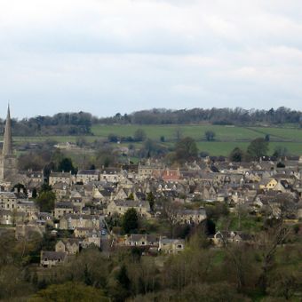 Painswick is a civil parish in Gloucestershire that spreads across rolling hills with traditional stone buildings, historic churches, and rural lanes connecting scattered settlements. The main village has a compact center with older houses clustered together, surrounded by open countryside and meadows.