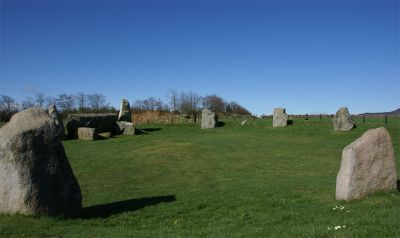 Easter Aquhorthies is a stone circle made of eleven granite blocks arranged on a gentle slope in Aberdeenshire. The stones form a circular pattern and create a simple yet striking monument from an ancient era.