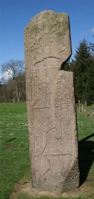Created in the 8th century AD during the Christianization period, this stone combines Pictish symbols with Christian imagery, reflecting religious transformation in Scotland.