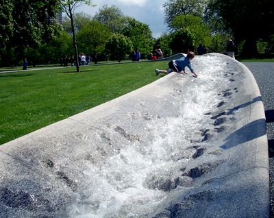 The Diana, Princess of Wales Memorial Fountain is a granite memorial in Hyde Park, Westminster, London. Water flows in an oval loop over different surfaces, creating fast cascades in some sections and gentle streams in others.
