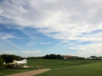 The park incorporates grazing sheep in its maintenance strategy, allowing these animals to naturally maintain the meadows in the center of an urban environment.