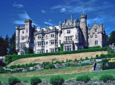 The castle spans over 60,000 square feet across the Highland landscape, featuring Scottish Baronial architecture with Edwardian interior designs throughout its halls.