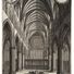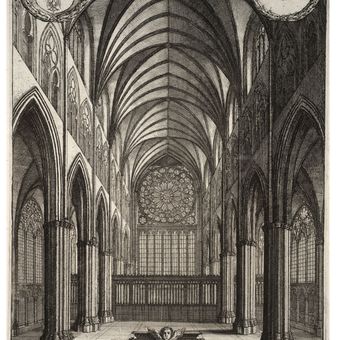Old St Paul's Cathedral was a Gothic church located on Ludgate Hill in central London, distinguished by its tall spire that could be seen from great distances. The interior extended about 179 meters in length and contained massive stone columns, pointed arch windows, and a high vaulted ceiling that created a sense of spaciousness.