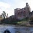Hailes Castle consists of red sandstone blocks forming a hall block, chamber tower, and kitchen tower along the River Tyne valley.