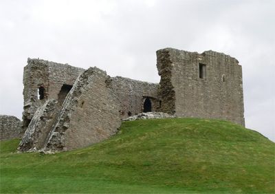 Duffus Castle is a fortification in Moray, Scotland, with a rectangular stone keep standing on an artificial mound. Deep ditches and curtain walls protected the structure and demonstrate the typical layout of Norman defensive designs.