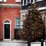 The brick building at 12 Downing Street features three storeys with a dormered attic, symmetrical facade, and multiple window arrangements under flat arches.