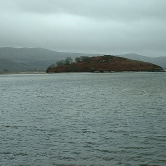 Ynys Gifftan is a tidal island in the Dwyryd Estuary in Wales, rising approximately 38 meters above sea level. The rocky terrain supports the remains of an abandoned cottage that has sat empty since the mid-1960s.