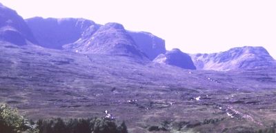 Beinn Bhàn rises to 896 meters above sea level on the Applecross peninsula, featuring steep cliffs and multiple corries on its eastern face.