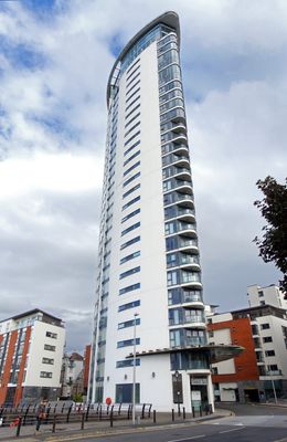 The Tower at Meridian Quay reaches 107 meters into the sky with 29 floors of modern apartments overlooking the waters of Swansea Bay.