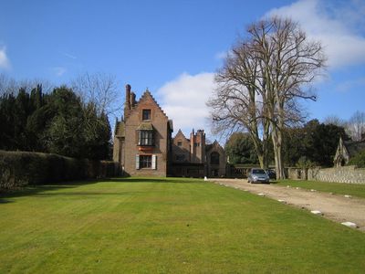The estate contains a Grade I listed building with original Medieval elements, including a 13th-century well, dungeon, and reputedly a priest hole.