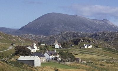 Hikers access the mountain from the A838 near Gualin House, following tracks through Strath Dionard before ascending the steep main ridge.