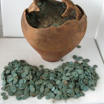 The coins were deposited in layers within the jar over several years, with newer coins from 333-335 AD placed above older specimens from 320 AD.