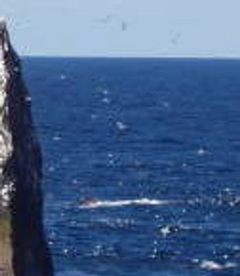 The rock formation represents a significant maritime navigation point for vessels traversing the North Atlantic waters between Scotland and Iceland.