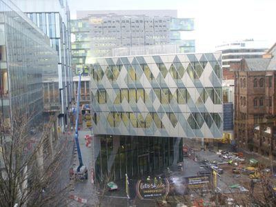 The building, designed by architectural firm Sheppard Robson, marks the evolution of Manchester's urban landscape after its official opening in 2009.