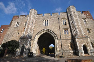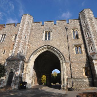 The fourteenth-century Abbey Gateway served as the main entrance to St Albans Abbey, marking the boundary between monastic grounds and the medieval town.