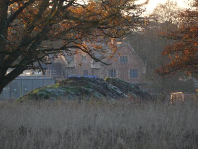 Former kennel house and walls of kennel compound behind Beechtree Lodge