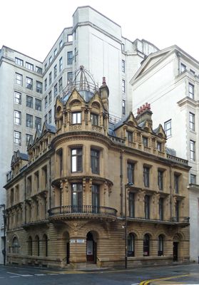 Known as Lombard Chambers, the building combines Gothic design elements with commercial architecture, reflecting the functional requirements of 19th-century banking institutions.