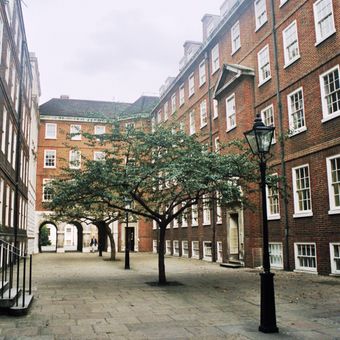 Located in Middle Temple Lane from Fleet Street, Pump Court forms an enclosed space with brick buildings constructed in the seventeenth century.