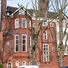 The red brick structure at 6 Ellerdale Road exhibits architectural elements from the Arts and Crafts movement with large proportions and detailed craftsmanship.