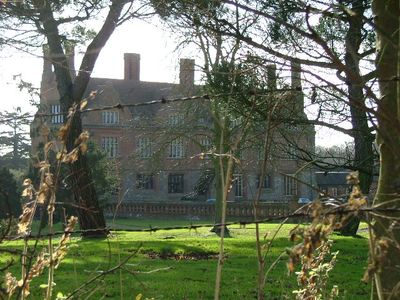 The structure incorporates two prominent gabled stair wings at the rear, distinguishing it from typical manor house designs of its period.